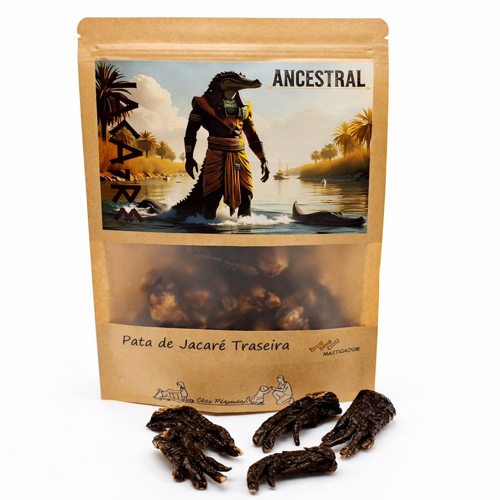 Petisco exótico, 100% natural e altamente nutritivo, feito exclusivamente com carne e osso de jacaré. Sem aditivos químicos ou conservantes, é uma opção segura, saborosa e única para surpreender o paladar do seu cão.