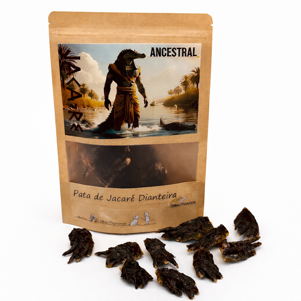 Petiscoexótico, 100% natural e altamente nutritivo, feito exclusivamente com carne de jacaré. Sem aditivos químicos ou conservantes, é uma opção segura, saborosa e única para surpreender o paladar do seu cão.