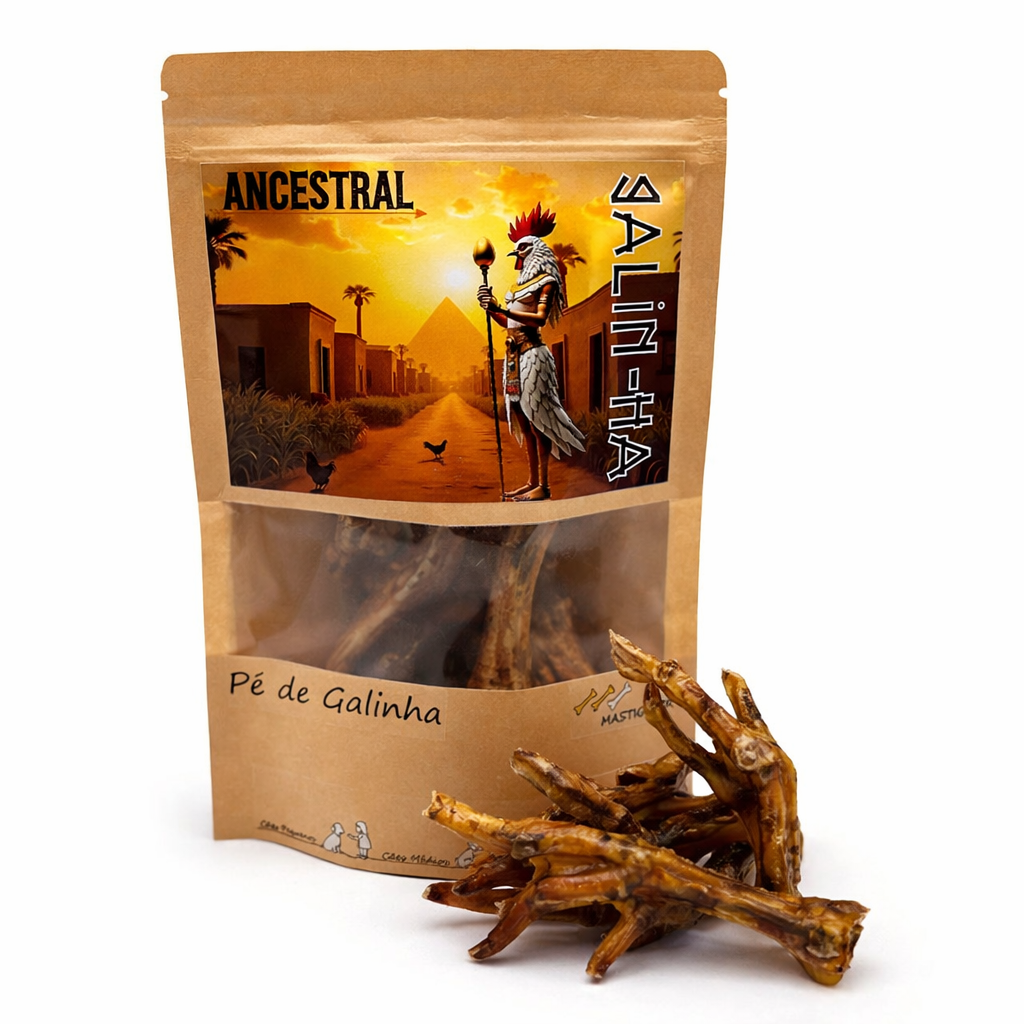 Pé de galinha 100% natural, crocante e nutritivo, ideal para cães de todos os portes. Rico em colágeno, glucosamina e condroitina, auxilia na saúde das articulações, fortalece os ossos e contribui para a mobilidade do seu pet.